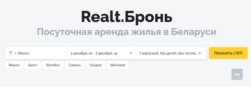Площадка для размещения объявлений по продаже и аренде недвижимости Realt запустила собственный сервис для брони квартир на сутки: «Realt.бронь». Пока система работает в бета-версии и при желании можно написать на почту рекомендации для улучшения ее работы. Мы решили проверить, что нововведение из себя представляет.