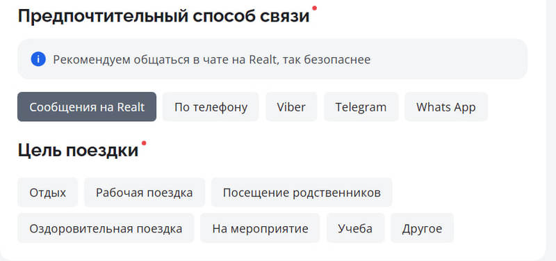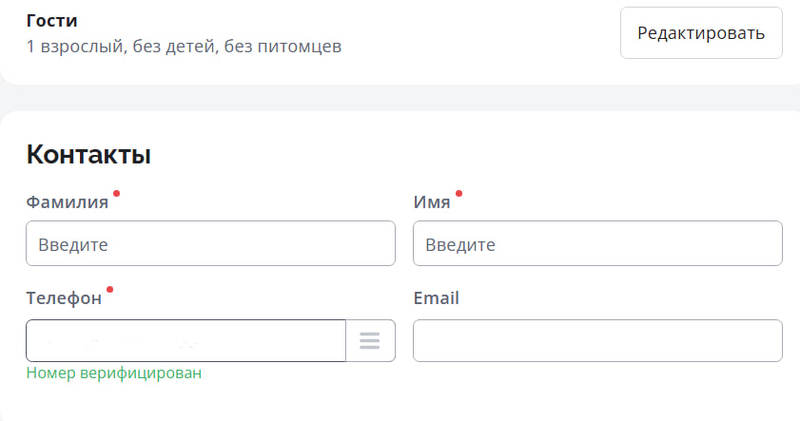 Для того, чтобы оформить бронь необходимо зарегистрироваться на сайте, заполнить контактные данные: имя, фамилия, e-mail по желанию, выбрать время заселения и выселения, а также указать предпочтительный способ связи с хозяином и выбрать необходимость предоставления документов для отчета в командировке.
