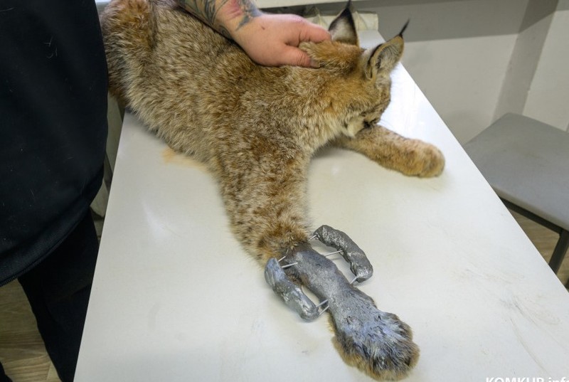 Специалисты освободили животное из капкана и привезли в ветеринарную клинику на прием к известному бобруйскому ветеринару Григорию Белягову.