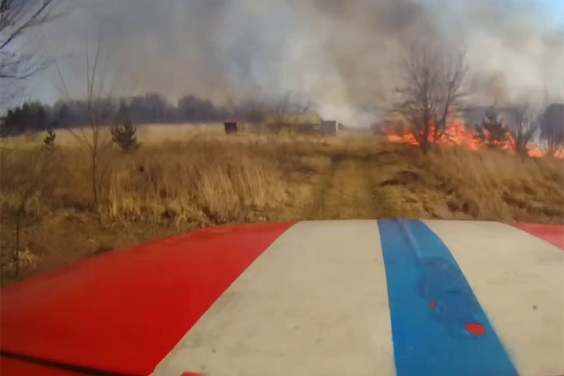 Сообщение о возгорании поступило спасателям днём. Один из местных жителей, наблюдая за разрастающимся пламенем, вызвал МЧС. «Оттуда уже пламя пошло, ветер дует сюда и несётся всё», — описал он ситуацию.