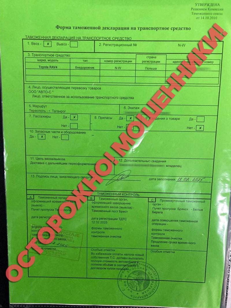 Последним обманутым стал россиянин, который прислал в таможню фотографии поддельных документов, якобы заверенных печатью Брестской центральной таможни. Однако такой таможенный орган в Беларуси не существует.