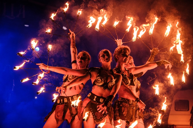 - Грандиозное шоу огня и пиротехники. Двухчасовая программа с участием топ-коллективов: единственного в мире Огненного цирка «KRESIVA» с эпической огненной сагой, огненного театра «ETERE», фаер-шоу клуба «МАОРИ», этнического огненного шоу «КЕТРИ», праздничного реактора «АТОМА», шоу-проектов «INSANE», «MARA», «STEAM SHOW» и других участников. Впервы, на одной площадке одновременно соберутся лучшие артисты огненного шоу со всей страны.