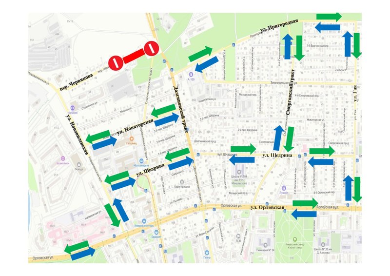 Объезд закрытого участка организован по улицам Щедрина, Новаторской, Пригородной, Гая, Нововиленской, а также по Сморговскому тракту.
