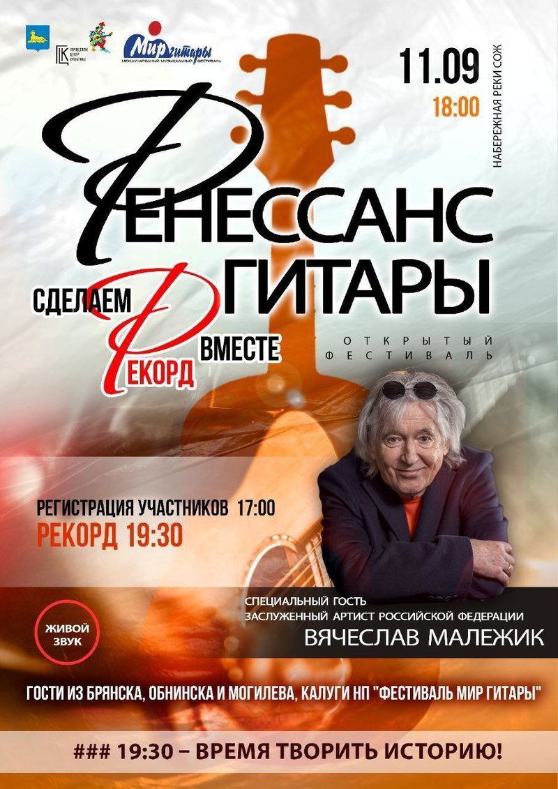 Сегодня, в 18:00, на живописной набережной реки Сож развернется настоящий праздник музыки – фестиваль «Ренессанс гитары». Главным событием вечера станет попытка установить новый гитарный рекорд, который обещает стать незабываемым зрелищем.