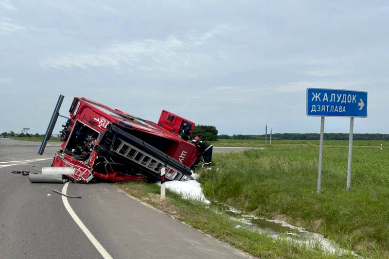 Судя по доступной фотографии, машина опрокинулась у поворота на Дятлово и Желудок. На машине видны буквы ЩУ — это начало слова Щучин, к ПАСЧ-1 которого машина и приписана. Буквы АЦ обозначают «автоцистерна».