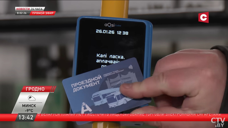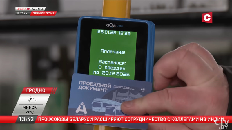 В Гродно запустили систему оплаты проезда банковской карточкой. Во всех автобусах и троллейбусах установлено более 300 цифровых считывающих устройств – валидаторов, сообщает СТВ.