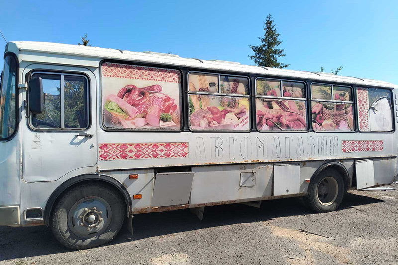 Продавцом автолавки выступает Гродненское областное потребительское общество. В оклейке автобуса, помимо слова «Автомагазин», использованы национальные узоры и слоган «Жить заботами сельчан!», который использует Белкоопсоюз, в том числе в магазинах и автомагазинах сети «Родны кут».