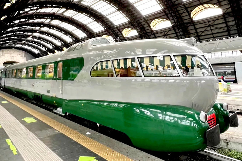 В Италии восстановили поезд в стиле модернизма — L'Arlecchino. Состав был разработан в 1950 году. У него четыре вагона и 110 пассажирских мест. Изначально максимальная скорость составляла 160 км/ч, но после модернизации в 1969 году её удалось увеличить до 200 км/ч, пишет 34travel. Это очень высокие характеристики для европейских поездов того времени.