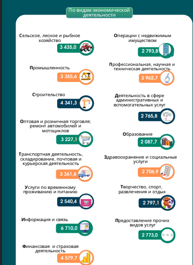 В транспортной сфере, включая складское хозяйство, почтовую и курьерскую деятельность, номинальная начисленная средняя зарплата составила 3 361,6 рубля. Промышленность показала результат в 3 355,6 рубля, а оптовая и розничная торговля, а также ремонт автомобилей и мотоциклов, замыкают список с показателем 3 227,1 рубля.