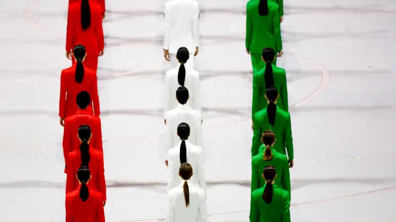 Даже олимпийский огонь получил культурную отсылку: дизайн чаш был вдохновлён инженерными разработками Леонардо да Винчи. Отдельное внимание уделили итальянской моде — по сцене прошли модели в костюмах от Armani в цветах национального флага. Таким образом почтили память Джорджо Армани, скончавшегося в 2025 году и долгие годы создававшего форму для сборной Италии.