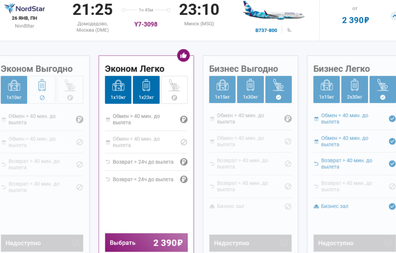 Билет единственного доступного класса «Эконом Легко» из Минска в Москву продается за 2.840 российских рублей. Это всего 106 белорусских рублей или 31 евро.