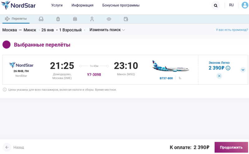 Недавно Минск появился в списке направлений на сайте авиакомпании, а сегодня появилась возможность и купить билет на конкретный рейс: из Минска в Москву (аэропорт Домодедово).