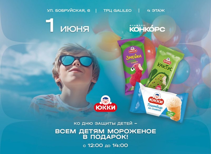 Но самое интересное – это бесплатная раздача 1000 пачек мороженого «ЮККИ» трех видов: классического пломбира, эскимо «Кактуса» с малиной и «Змейки» с вишней. По порции десерта от BREMOR и ТРЦ Galileo получит любой ребенок или подросток.