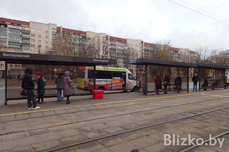 Тут же, на Якуба Коласа, расположены трамвайные остановки встречных направлений, обе называются «Волгоградская».