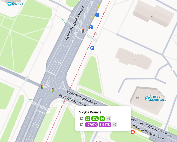 В том месте, где улица Волгоградская пересекается с Якуба Коласа, есть несколько остановок общественного транспорта.