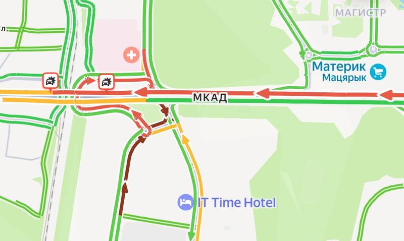 Трудности отмечаются по МКАД со стороны проспекта Независимости в направлении улицы Ваупшасова.