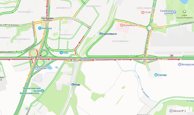 Заторы отмечаются по МКАД со стороны улицы Наполеона Орды в направлении улицы Лейтенанта Кижеватова.