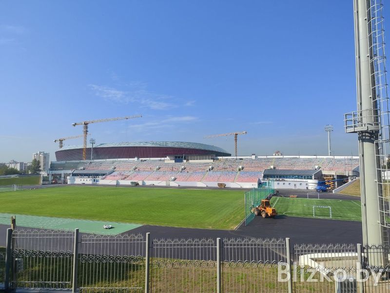 Рядом с футбольной ареной находится стадион «Трактор». Blizko.by рассказывал, что там завершилась реконструкция, после которой число мест на нем уменьшилось.