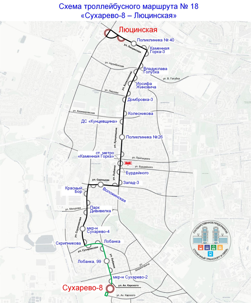 А уже с понедельника троллейбус перенаправят на другую конечную: маршрут будет называться «Сухарево-8 – Люцинская». Он пойдет по улицам Сухаревской, Лобанка и Академика Карского.