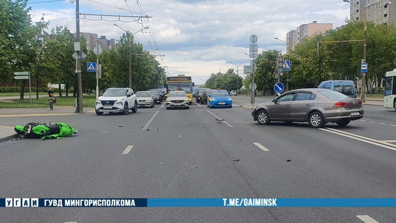 УГАИ ГУВД Мингорисполкома сообщает: в понедельник 41-летний водитель автомобиля Volkswagen ехал по улице Плеханова. При повороте налево для въезда во двор дома №60 он выехал на полосу встречного движения и остановился. При этом не уступил дорогу мотоциклу Kawasaki, который двигался навстречу. В результате произошло столкновение.
