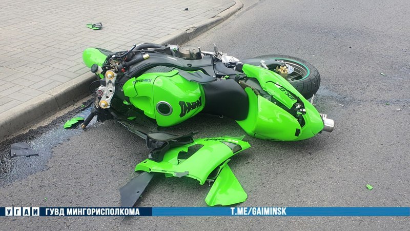 ГАИ публикует видео, по которому видно, что ярко-салатовый Kawasaki едет в кадре слева направо, ударяется в левую переднюю часть автомобиля, и мотоциклиста выбрасывает из седла. Он перелетает через крышу машины и буквально вылетает за правую границу кадра видео.