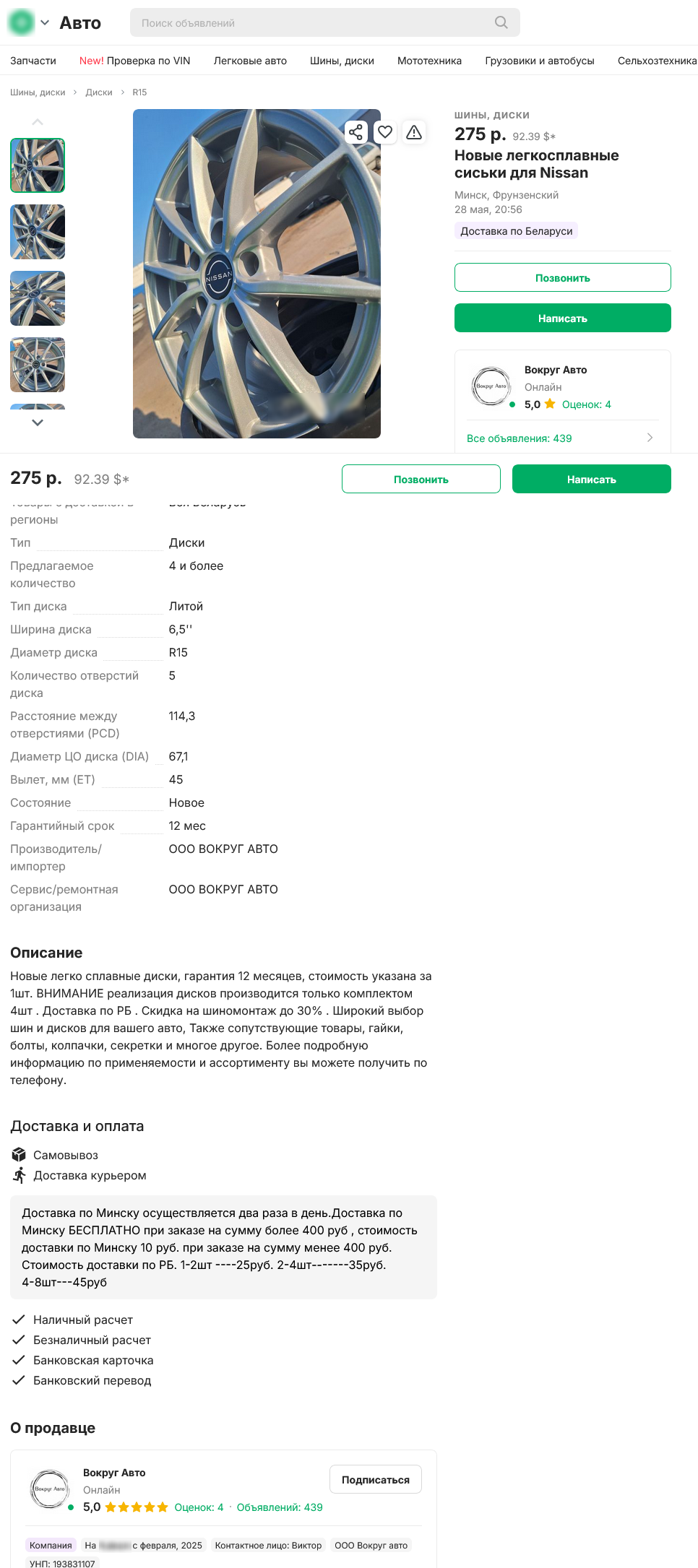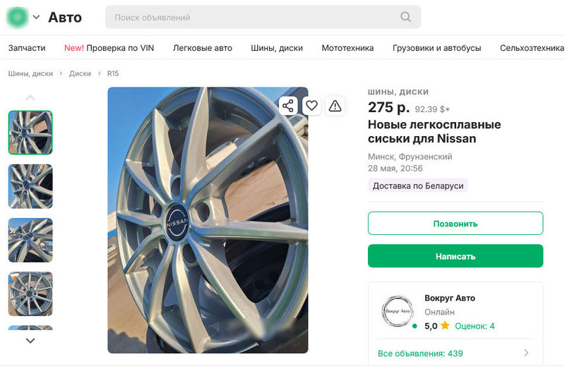 Любопытно также, что объявление было опубликовано еще 28 мая этого года, но за прошедший месяц ни модераторы, ни потенциальные покупатели, ни сам продавец не заметил ошибки. Всего же у этого продавца (а это компания «Вокруг авто») 439 объявлений на сайте.