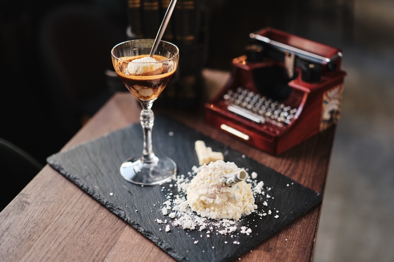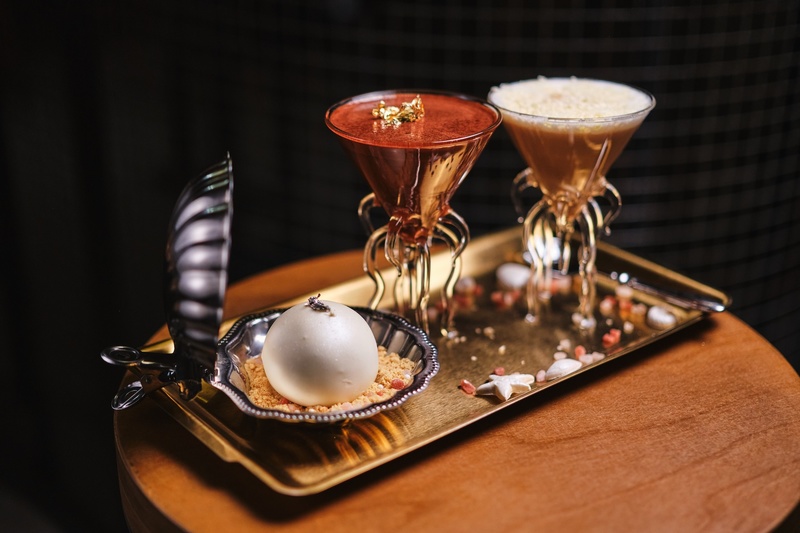 - «Сухой Прилив» (плотный эспрессо с горячим молоком, в котором растворена теплая табачно-ванильная нотка, белый шоколад и розовая морская соль. Соленая нота усиливает карамель в перламутровой жемчужине, а невысокая сладость помогает лучше почувствовать ванильный крем)