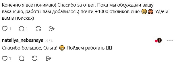 Автор поста поблагодарила за ответы и отметила, что пока они общались, на вакансию откликнулись еще 1000 человек.