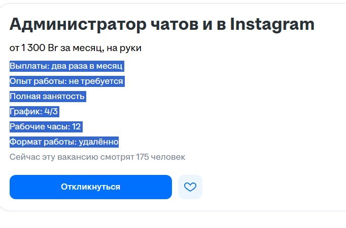 Опыт работы не требуется, график 4/3, формат работы — удаленный. Обязанности: отвечать на вопросы и комментарии в инстаграм и своевременно удалять/добавлять изделия на сайт при поступлении их в сток.