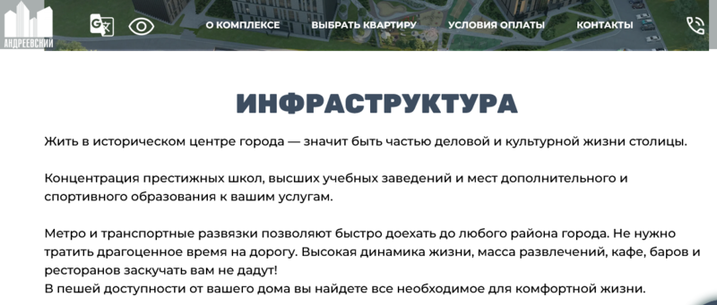 На новом сайте застройщик пошел еще дальше и называет это место историческим центром города с концентрацией элитных школ и вузов, что далеко от реальности. Это место никогда не было историческим центром города.
