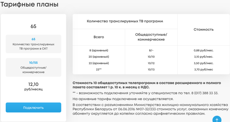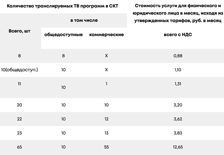 Как можно заметить, стоимость из 8 и 10 общедоступных каналов не изменилась, а на других тарифных планах произошло небольшое подорожание: