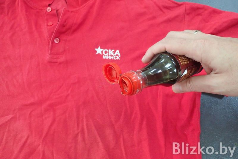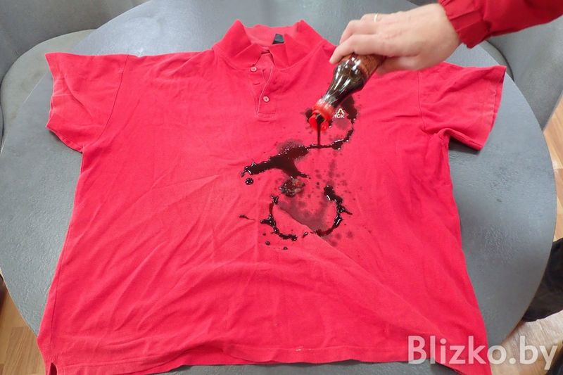 Итак, для чистоты эксперимента мы принесли в редакцию вот эту тенниску. Цвет красный, состояние чистое.