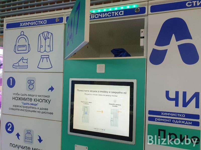 «Чистомат» — это автоматический приемный пункт химчистки. Устройство бесконтактное, в том смысле, что все здесь происходит без участия персонала — вы самостоятельно сдаете вещи.