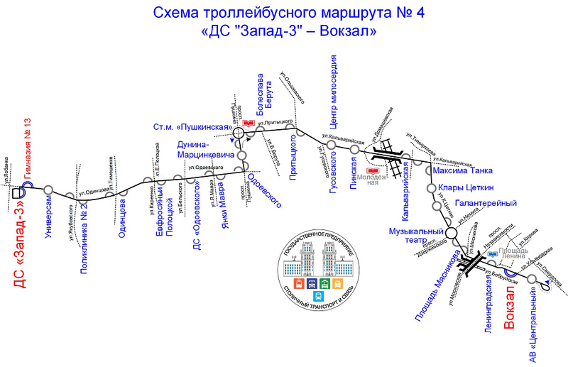 Кроме того, с 8 же января трасса троллейбусного маршрута №4 «Одоевского – Вокзал» продлевается от диспетчерской станции «Одоевского» до ДС «Запад-3». Маршрут получает наименование «Запад-3 – Вокзал».
