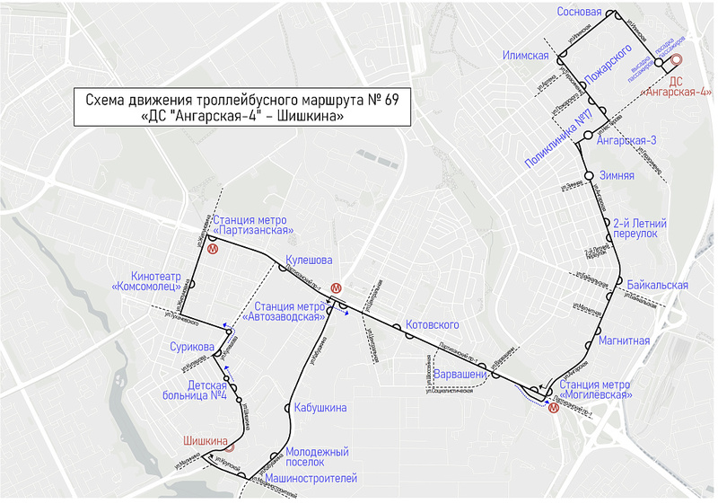 Учреждение «Столичный транспорт и связь» сообщает: с 8 января по будним дням организуется работа нового троллейбусного маршрута №69 «Ангарская-4 – Шишкина». Он будет ходить с 06:30, последний рейс с конечной «Шишкина» отправится в 19:50.