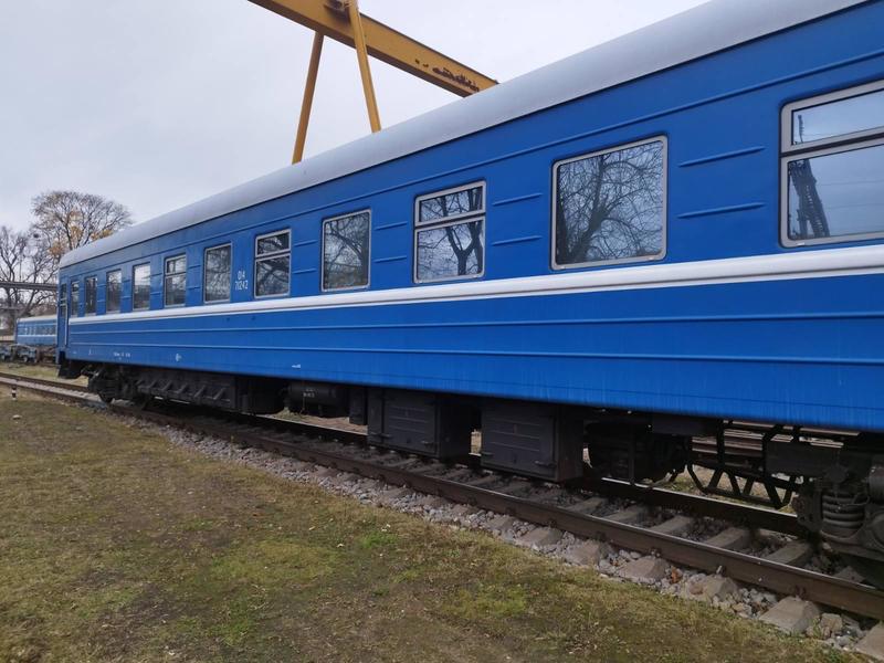 Вагон изначально строился как купейный (об этом говорят два продольных ребра жесткости под окнами вдоль всего корпуса). Он прошел два капитальных ремонта в 2010 и 2021 годах на рижской фирме L-Ekspresis, а также деповский ремонт на вагоностроительном заводе в Гомеле в 2024-м. Судя по маркировке, срок эксплуатации вагона продлевался до конца января 2025 года. Двухосные тележки (колеса) для вагона изготовлены в Твери в январе 2024-го.