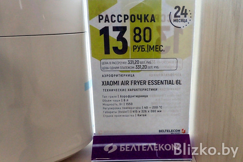 Кстати, мы сравнили цены с другим популярным магазином техники. Вот аэрогриль Redmond AG1902. В BeltelecomSHOP он стоит 338,4 рубля единовременным платежом или 372 рубля в рассрочку на 24 месяца (ежемесячный платеж 15,5 рубля). А у конкурирующего магазина эта же модель стоит 384 рубля единоразово либо столько же в рассрочку, но на меньший срок и с большими ежемесячными платежами (от 32 до 76,8 рубля в месяц).