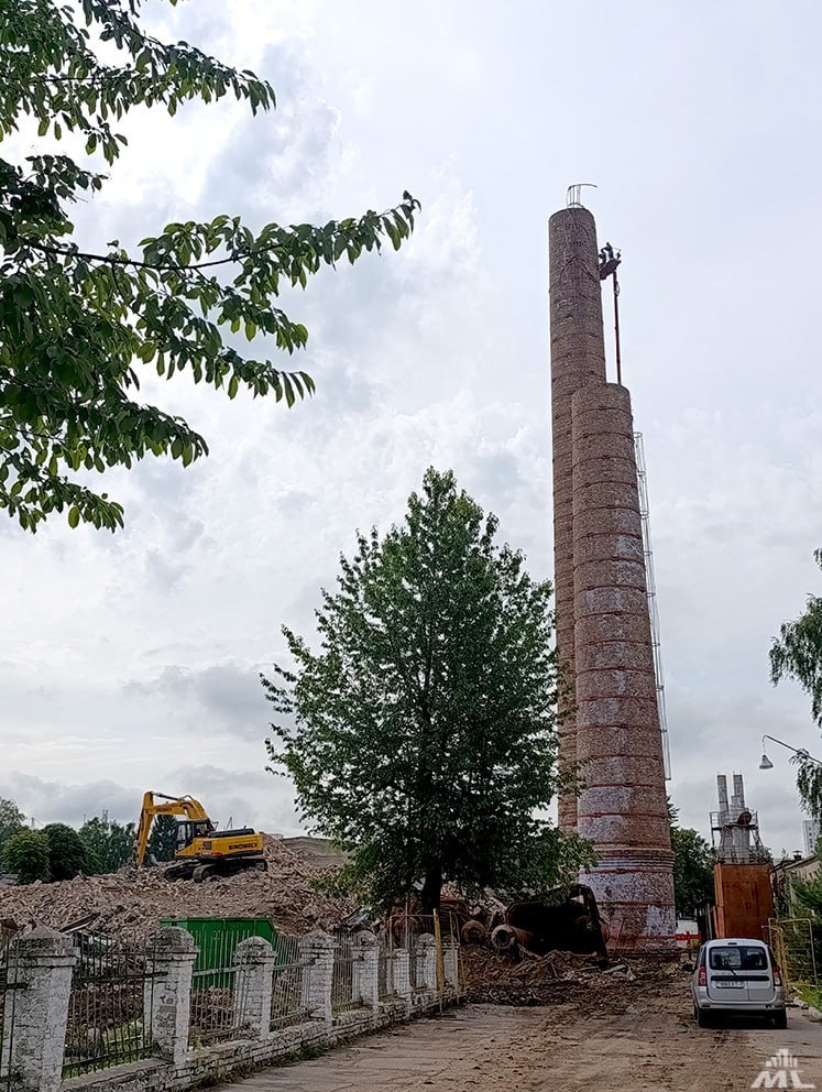 Десять из них уже разобрано, еще семь – в работе. При этом на разборку высотных труб (49,6 м) бывшей котельной привлекли промышленных альпинистов. С помощью перфораторов они вручную понижают башни до 27 м, затем за дело возьмется техника.