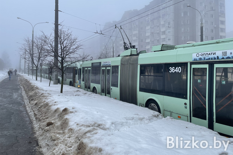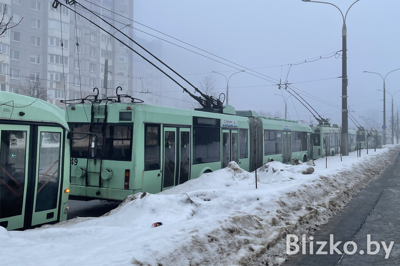 Blizko.by рассказывал: вчера в разных частях города начиная с полудня начали тут и там останавливаться троллейбусы. Такая картина наблюдалась в районе Пушкинской, практически на всем протяжении проспекта Дзержинского и прилегающих улицах, в районе станции метро «Институт культуры», на Партизанском проспекте и на Ангарской, у Минск-Мира, в Курасовщине, Серебрянке, у Кальварийской, на Свердлова и Аранской.