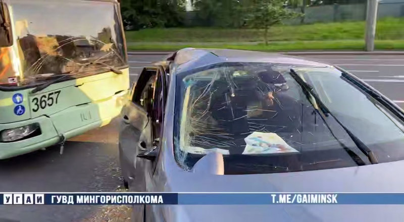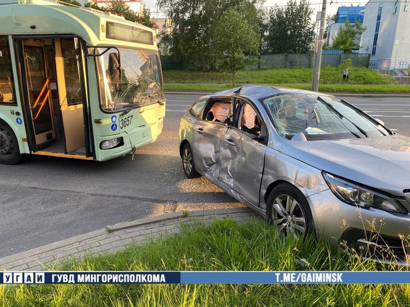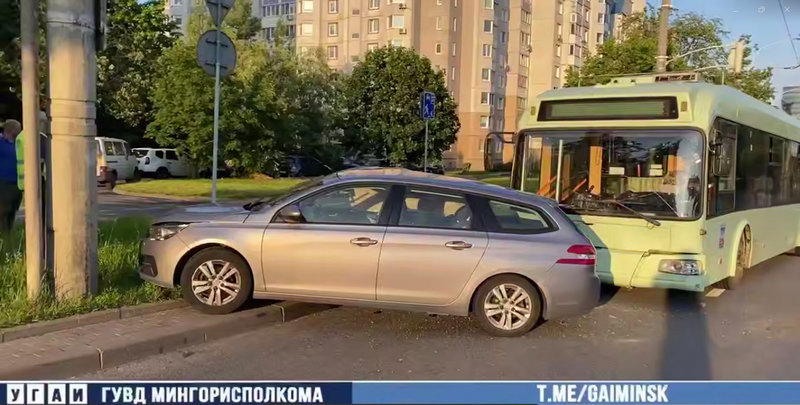 ГАИ сообщает, что вчера вечером в Минске троллейбус подбил легковушку.