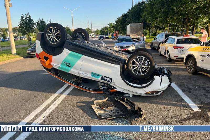 Авария произошла около 18:30 на проспекте Дзержинского. По предварительной информации, 20-летний водитель каршерингового авто Belgee вблизи дома №131 отвлекся от управления и врезался в стоящие у края проезжей части автомобили Volkswagen, Lada, Seat, BYD. От удара Belgee опрокинулся.