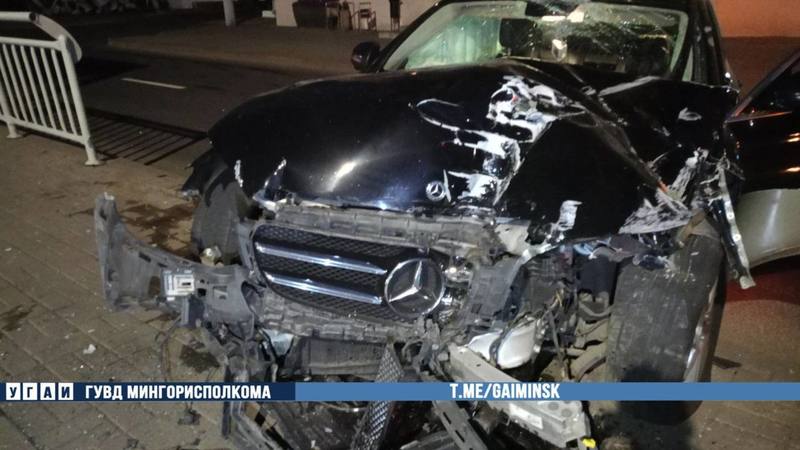 Авария произошла сегодня ночью. По предварительным данным, 21-летний водитель Mercedes, двигаясь по улице Якуба Коласа, вблизи дома №9 выехал за пределы проезжей части, после чего врезался в стойку с дорожными знаками и остановочный пункт. Предположительно, мужчина уснул за рулем.