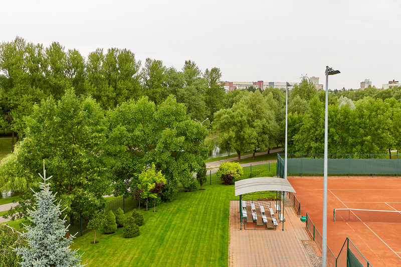 В составе комплекса: 2 крытых теннисных корта, оснащенные профессиональным покрытием, соответствующим требованиям Australian Open, а также 3 открытых корта с покрытием грунт, которое спроектировано и уложено по всем стандартам известного теннисного турнира Roland Garros.