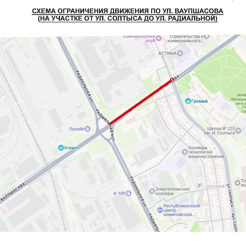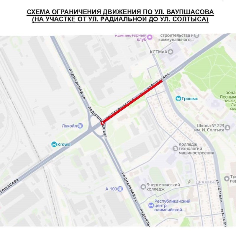 Таким образом, на участке от улицы Солтыса до улицы Радиальной движение будет ограничено 16 апреля с 00:30 до 04:30.
