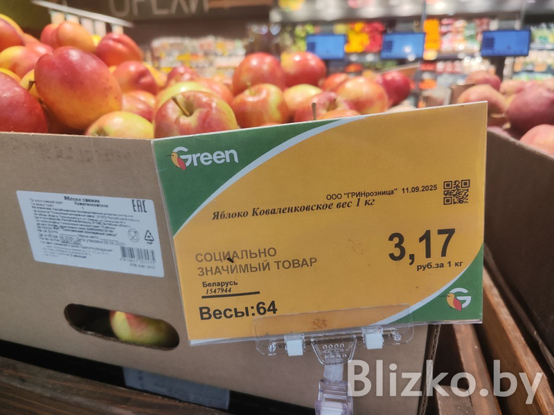 В Минске в одном из магазинов появились недорогие белорусские яблоки. Так, в гипермаркете Green по адресу проспект «Газеты Правда», 40 появилось белорусское яблоко «коваленовское» по 3,17 рубля за килограмм.