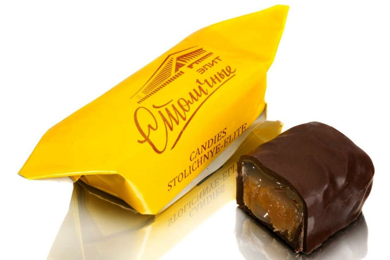 Это, конечно, отсылка к известным «коммунарковским» конфетам «Столичные элит» с Дворцом спорта на этикетке, — в этих конфетах ликерная начинка.