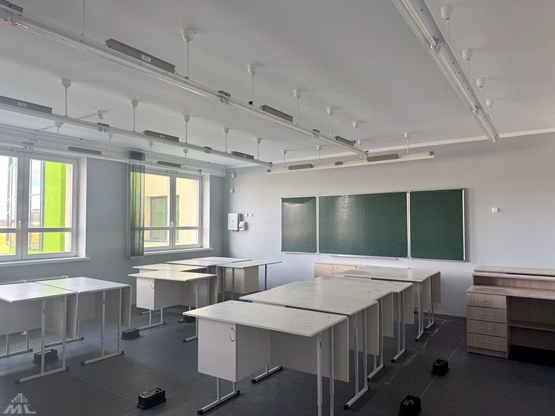 Сейчас в новостройке расставляют парты, оборудованием наполняют учебные мастерские, лаборатории, столовую, спортзалы.