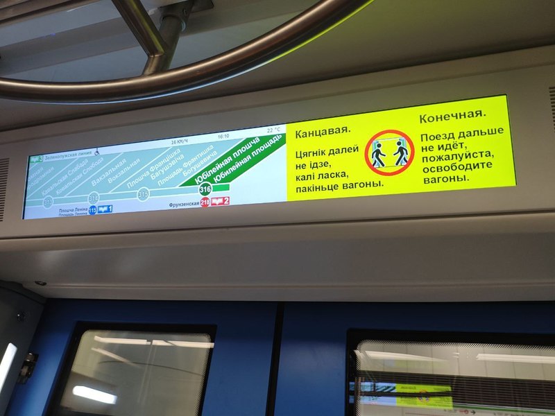 Телеграм-канал «Метро постсоветских стран» сообщает, что в минской подземке испытывают новую схему линий. Речь идет о схеме, которая отображается на электронном табло внутри самого состава. Причем только на третьей линии и только в поезде семейства 81-765.7/766.7 «Минск-2024». «Подопытным» составом стал поезд с бортовыми номерами вагонов 70106-70206-70306-70906.