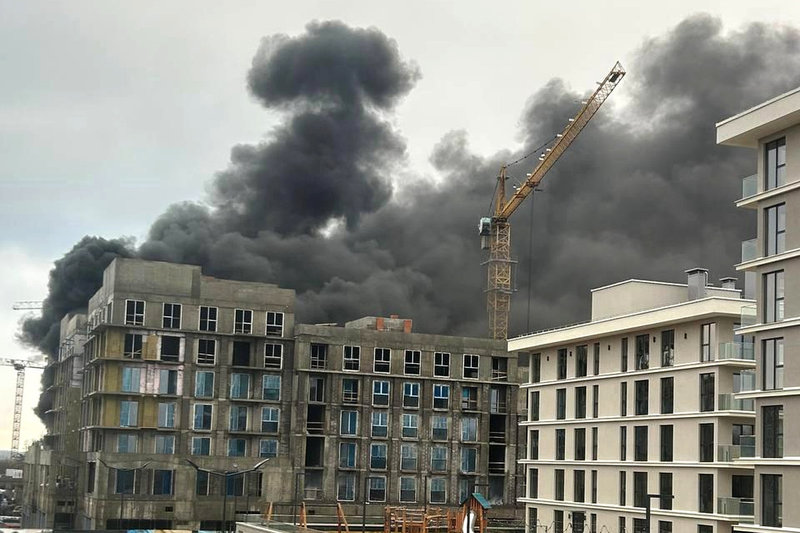Характер задымления позволяет предположить, что горит утеплитель, как это было недавно в Минск-Мире.