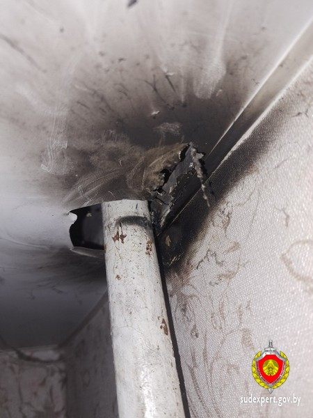 Эксперт пришел к выводу, что возгорание случилось из-за короткого замыкания, возникшего между заземленной трубой отопительной системы и профилированным каркасом натяжного потолка. Это стало возможным из-за повреждения участка электросети внутри стены при монтаже алюминиевого профиля натяжного потолка.